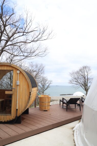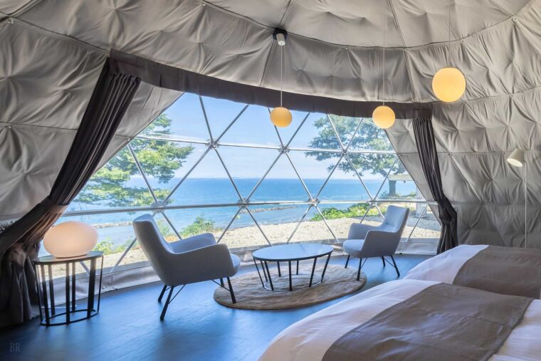 「緑豊かな自然と共存し、雄大な海を見下ろす珠玉の隠れ家」をコンセプトに上越市五智に昨年9月に誕生したグランピング施設、蒼天海峯-SOUTENKAIHOU-