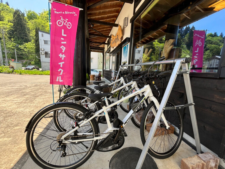 魚沼市でレンタサイクルを利用するなら、JR小出駅前にある魚沼の地酒 富士屋へ。スポーツタイプの電動アシスト付き自転車が用意されており、軽快な走り心地を楽しむことができます。