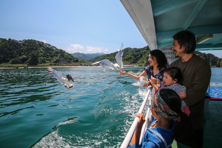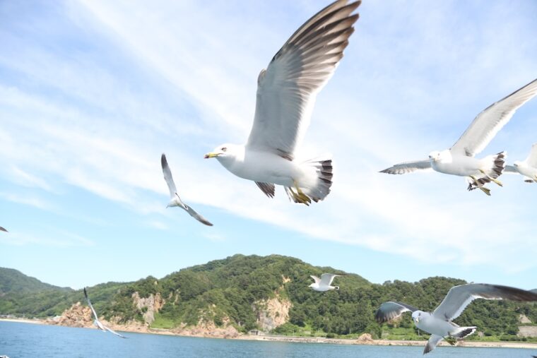 船上では、心地よい潮風を感じながらおもしろい形の岩を探してみたり、手を伸ばせば届きそうな距離まで迫ってくるカモメに餌付けをしたりとワクワクが盛りだくさんです!