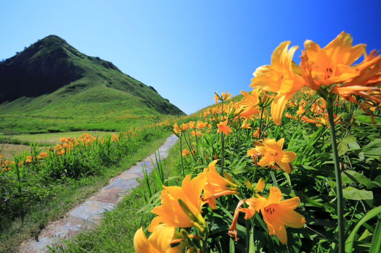 トビシマカンゾウの見頃はちょうど今頃から6月上旬まで。黄色い花が一面に咲く様子は実に感動的です!