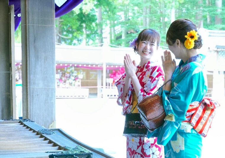 参拝は一般的な「二礼二拍手一礼」ではなく、「二礼四拍手一礼」。これは、より丁寧にお参りするという意味で、古くから伝わる作法です。