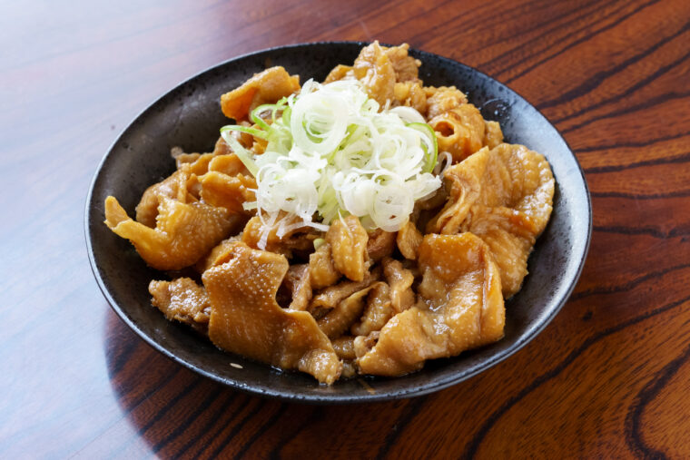 塩川町の鳥モツは鳥皮を煮込んだ料理のことで、クセが少なく、モツが苦手な人でも食べやすいのが魅力です。