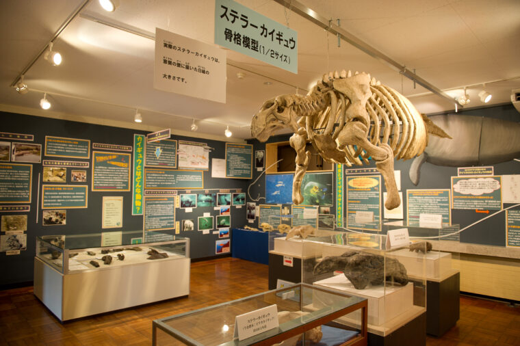 国内で数例しか確認されていない貴重なダイカイギュウと、福島県の天然記念物に指定されているアイヅタカサトカイギュウの頭骨、肩甲骨、前腕骨などの化石が見られます。