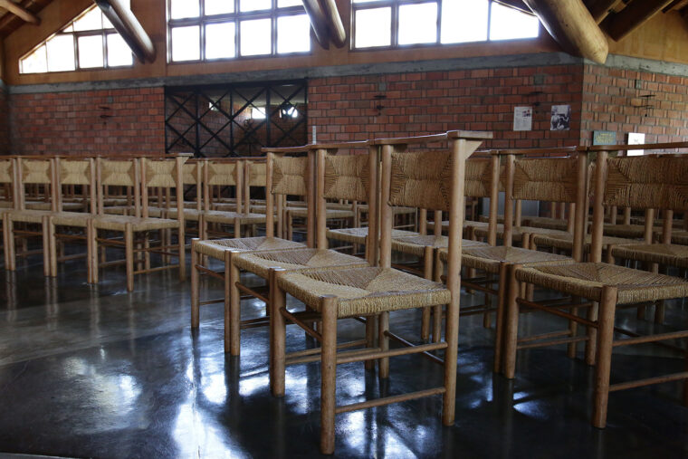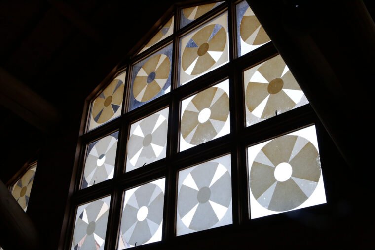 そのほか、ノエミ・レーモンド夫人がデザインした、和紙を使ったステンドグラス風の窓や、50年以上経つ今でも使われている信徒用のイスなどにも注目を!