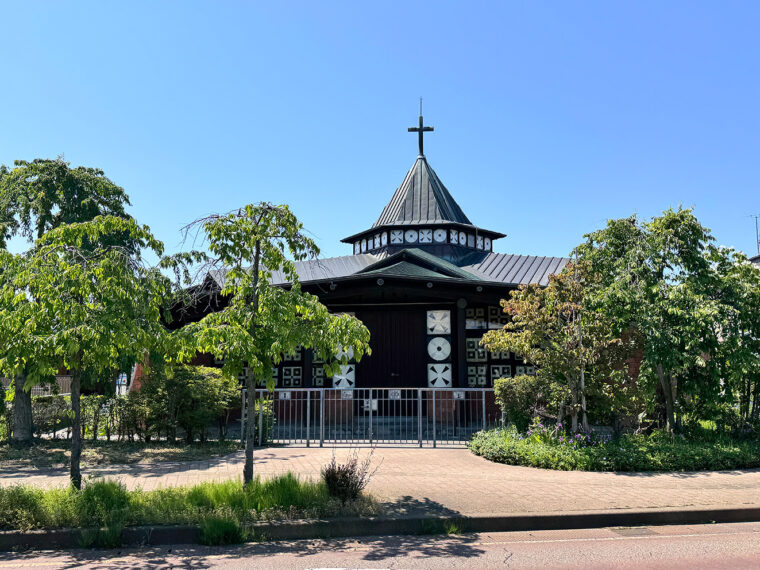カトリック新発田教会の境内にある聖堂は、チェコ出身の建築家、アントニン・レーモンドによる設計のもと、1966年に完成。