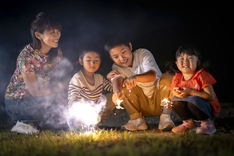 また、会場にはライトアップされた特設ラウンジが設営され、夜ならではの焚き火でのバーベキューや手持ち花火などを体験することができます。