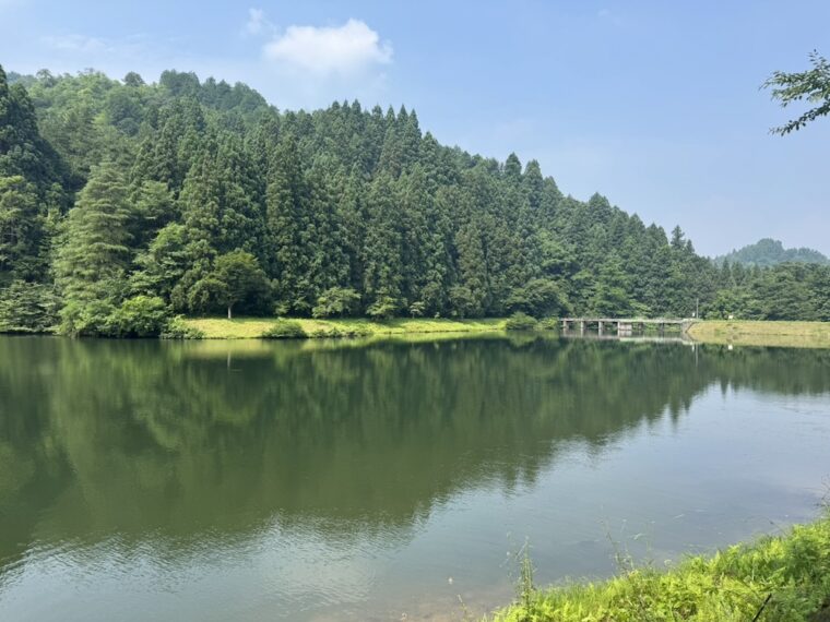市内の中心を流れる加茂川の上流にある貯水ダムでもあるため、市民からは水源地として親しまれている場所で、近くには日帰り温泉「加茂七谷温泉 美人の湯」やところてんの名店「善作茶屋」もあるので、行き帰りにぜひ立ち寄ってみてください。