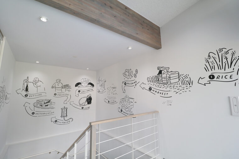 白瀧酒造の全銘柄や限定グッズが揃うショップのほか、利き酒セット(600円~)などを提供するカウンターや気軽に利き酒ができるメダルサーバー(1枚100円)を備えたタップルーム、来年の春に稼働予定の映像と音で酒造りの世界に没入できる予約制のラウンジを完備しています。