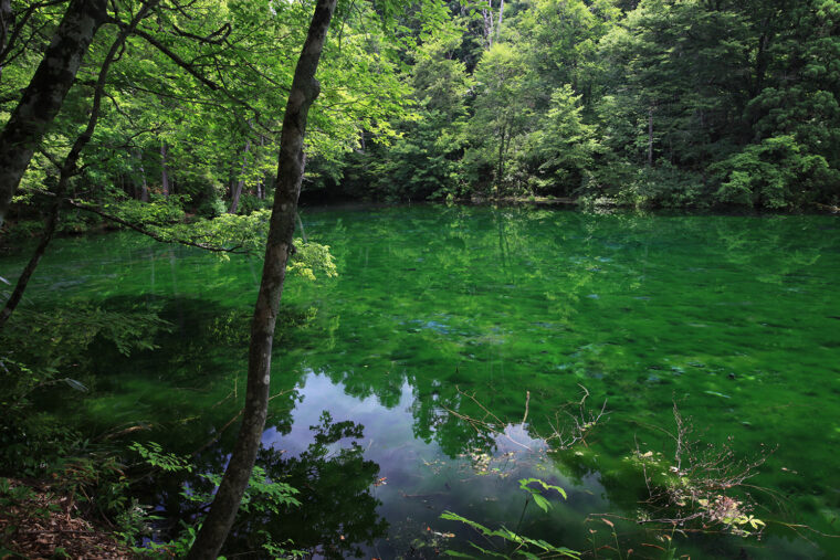 1.2ヘクタールの池の水が1日で入れ替わるほどの豊富な湧水量を誇っています。