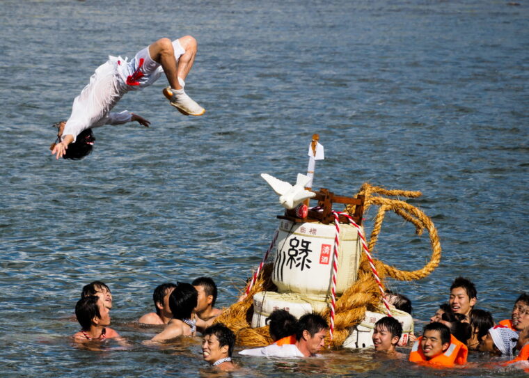 最終日、迫力ある神輿のパフォーマンスなどの後に行なわれる、神輿が川を下る「神輿流し」は一見の価値あり!!