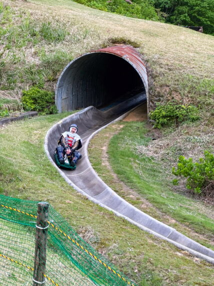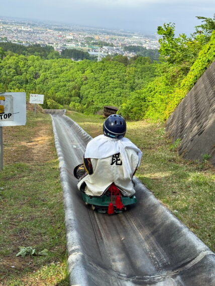 全長450メートルのダイナミックなコースを、上越市街地の景色を眺めながら一気に滑り降りるボブスレー。風を切るスピード感と爽快感は大人から子どもまで楽しめる人気のアトラクションです。ボブスレーは3歳から利用でき、小さなお子さまも気軽に挑戦できます。