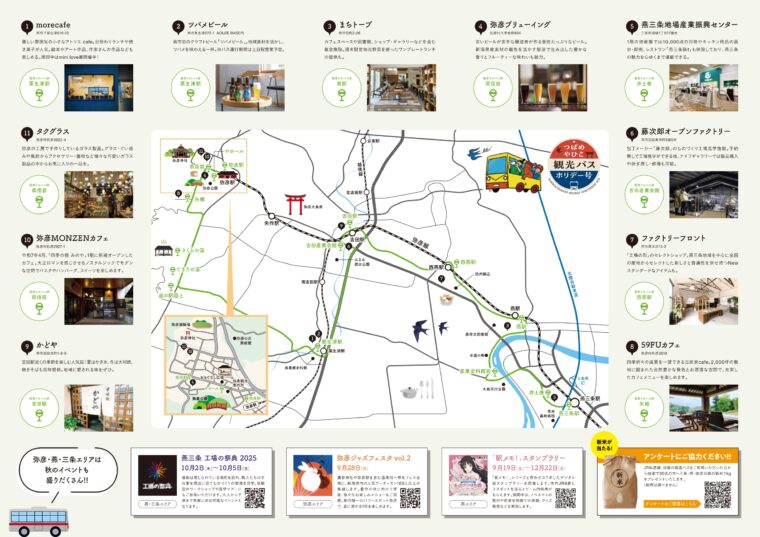 10月26日(日)までの土・日曜、祝日にJR弥彦線(東三条駅⇔弥彦駅)に乗ると、つばめやひこ観光バス『ホリデー号』と循環バス『ぐるっとさん』が一日乗り放題に!