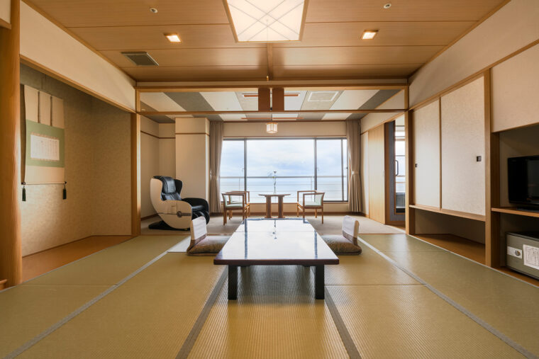 3タイプの客室から選ぶことができ、なかでもおすすめは露天風呂付客室 大観。