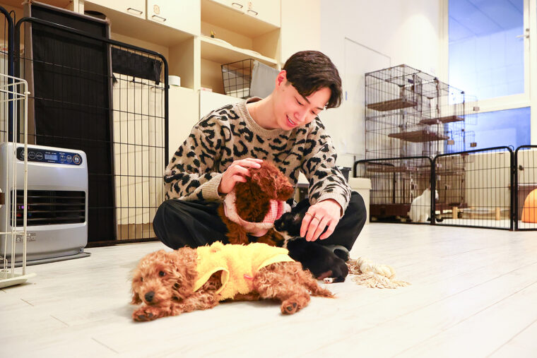 取材時にはトイプードル、チワワなど4匹がスタンバイしていました。