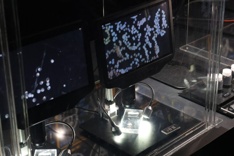こちらのマイクロアクアリウムは、肉眼では見えない小型のクラゲを顕微鏡やルーペを使って観察するエリアです。