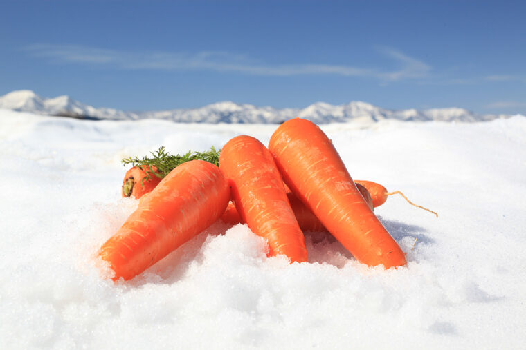 3月中旬から4月にかけて、深い雪の下から掘り出される『津南雪下にんじん』は、GI認定を受けた津南のブランド野菜です。