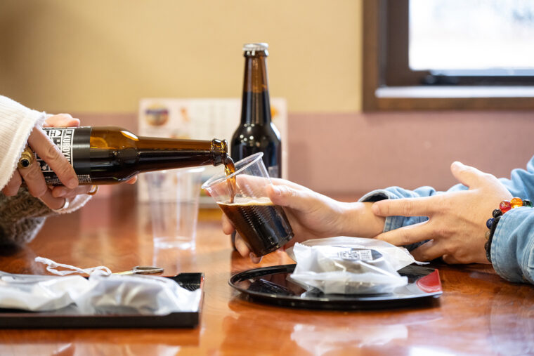 食べ物やビールはもちろん買って帰れるけど、奥の食堂でそのまま飲食もできると聞き、ひなたは『くろすけ』という最中風のお菓子や『黒湯ドーナツ』、そしてオリジナルの黒ビールを堪能しました!