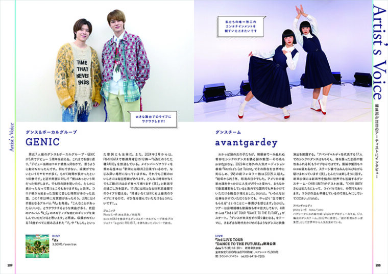 今回はバブリーダンスの振付師akaneがプロデュースするダンスチーム・avantgardey(アバンギャルディ)、avexのDNAを継承するダンス&ボーカルグループ・GENIC、男性アイドルグループ・ReLIT(リリット)、SNSを中心に人気を集める音楽ユニット・TENSONGの4組。