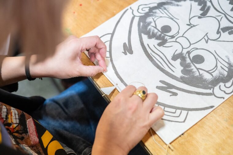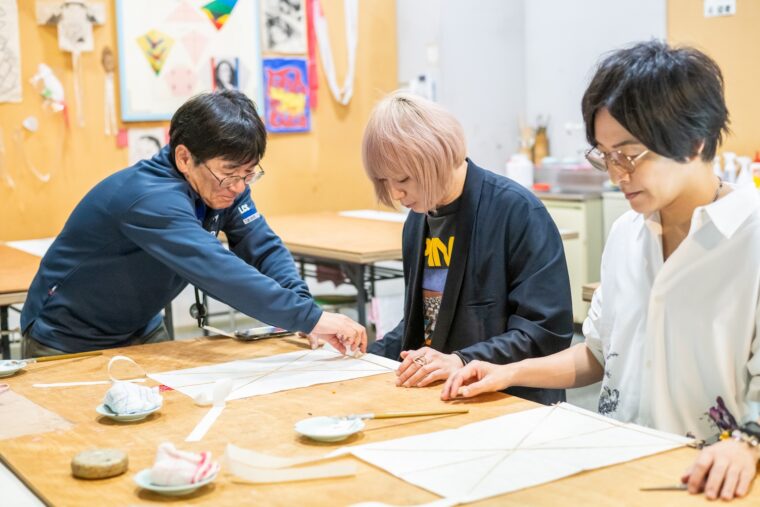 また、和凧作りを体験できるということで、笠井さんのレクチャーのもと楽しく制作しました。