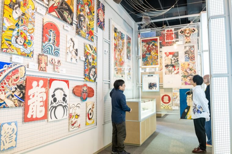 館内には白根の凧のほかにも日本各地や世界各国の凧が展示され、色鮮やかな凧が壁を埋め尽くしています。