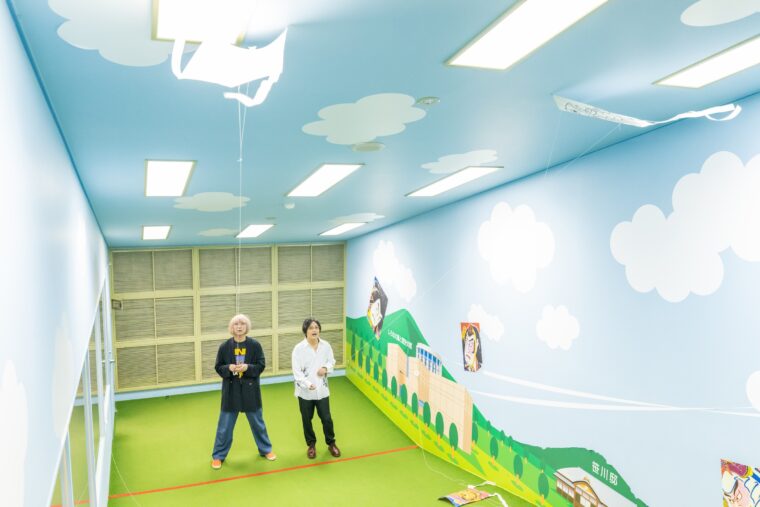 完成した凧は、凧を揚げることができる部屋(風洞実験室)で早速揚げてみたんだけど、めっちゃ楽しかった!