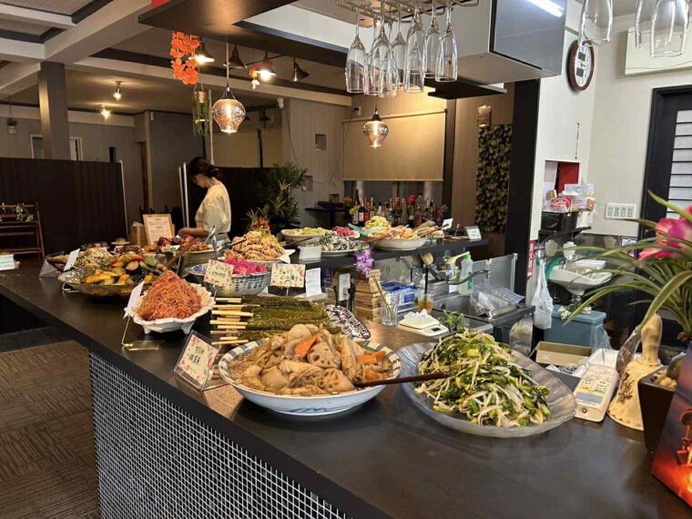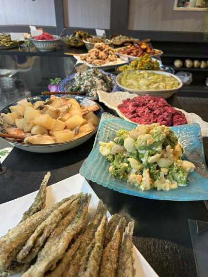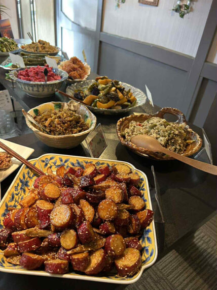 自然食ぽのわさんは、無農薬野菜と無添加調味料にこだわった手作りのお惣菜が並びます。