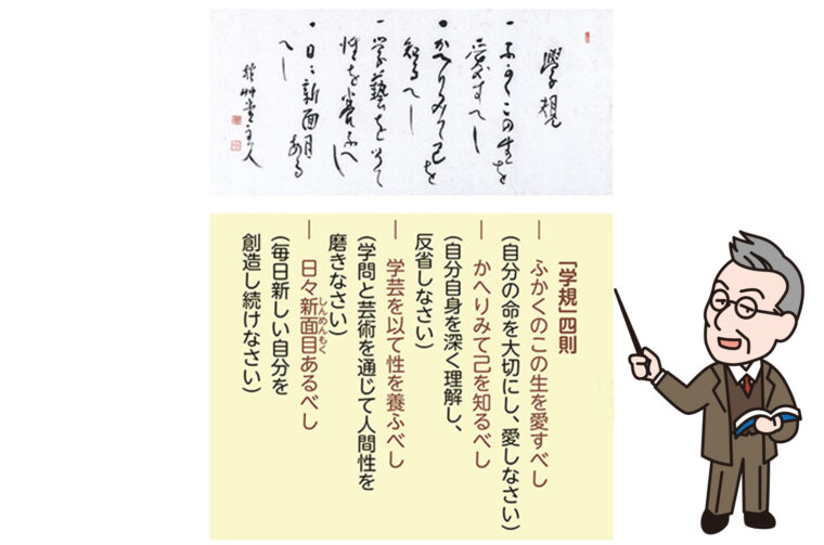 受験に挑む学生に向けて人生の指針を示した「学規」四則は、後に自らの座右の銘にもなりました。