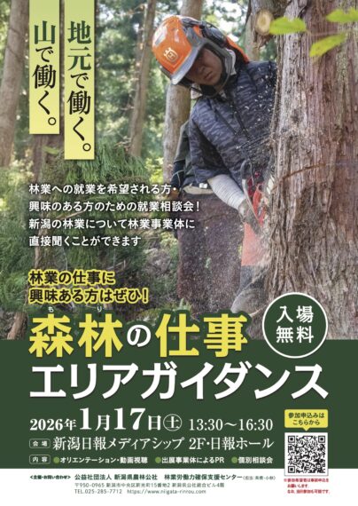 新潟県は総面積70%近くが森林で、森林組合などの林業認定事業体が全県下で50以上あるという、林業に縁の深い県でもあります。