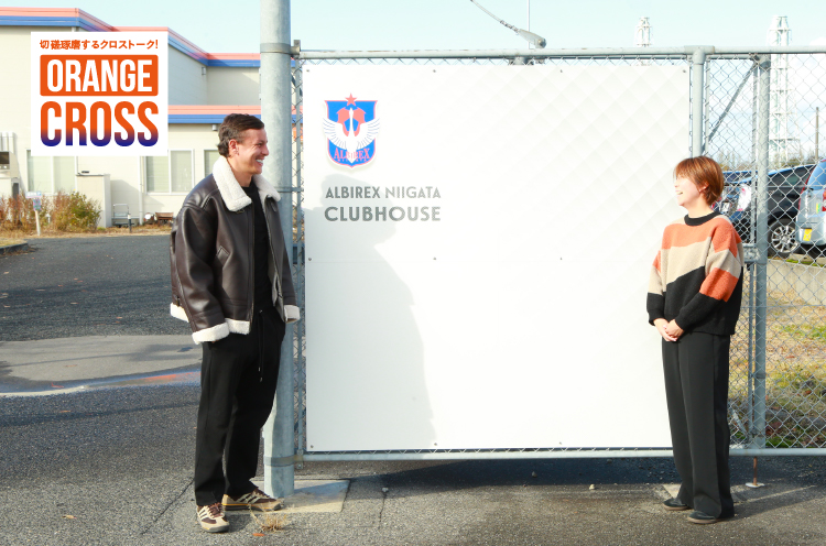 アルビレックス新潟とアルビレックス新潟レディースから、ふたりのアルビ戦士がクロストーク形式でお互いのプレーやスタイルを深く掘り下げる『ORANGE CROSS』。
