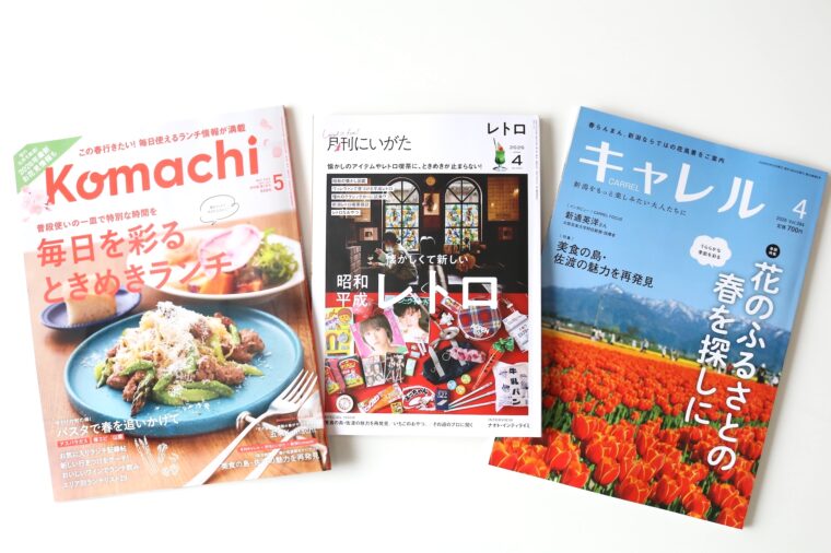 新潟Komachi5月号、月刊キャレル4月号、月刊にいがた4月号のいずれかを読んで(いや全部を読んでくれたら最高です!)特集内のQRコードから応募してください。
