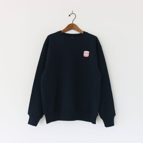 厚手のクルーネックスウェットはネイビーとグレーの2色展開。