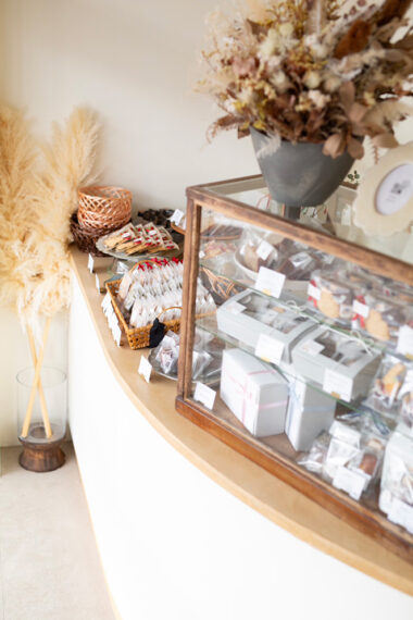 カウンターに並ぶかわいい焼菓子には、店主のやさしさと思いがたっぷり詰まっています。